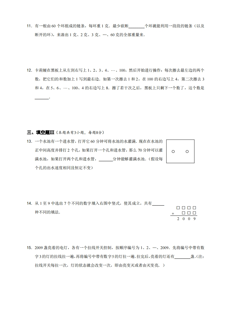 六年级奥数下第19讲-小升初总复习模拟测试六(带解析)芝士老师1年前发布关注私信0.40MB5页669245六年级奥数下第19讲-小升初总复习模拟测试六(带解析)此内容为付费资源,请付费后查看会员专属资源学期会员免费研学会员免费您暂无购买权限,请先开通会员开通会员强烈推荐123网盘下载,非会员不限速如果下载链接失效请联系客服补发如需手机上下载打印,请用手机浏览器打开本站付费资源 第1页 / 共5页 第2页 / 共5页 第3页 / 共5页 试读已结束,还剩2页,您可下载完整版后进行离线阅读 © 版权声明 1 如果您找不到想要的资料, 点击这儿 可以查看网站使用手册! 2 可能会帮助到你: 网址导航 | 网站入门 | 获取邀请码 3 如果遇到付费才能看或下载的文章,建议您升级本站VIP会员;全站所有资源任意下,免费看。 4本站资源部分来自网络,由多位老师收集整理,如有侵犯你的权益请 联系站长,我们会第一时间进行审核删除。 5 站内资源为网友个人学习或测试研究使用,未经原版权作者许可,禁止用于任何商业途径!请在下载24小时内删除! THE END小学奥数专题六年级资料专区# 奥数 这套资料真的不错,快分享给您身边最好的朋友吧^_^点赞245 分享QQ空间微博QQ好友海报分享复制链接收藏 可以按Ctrl+D收藏此页面 HI!请登录 登录 注册 搜索 开启精彩搜索 付费资源会员专属资源学期会员免费研学会员免费强烈推荐123网盘下载,非会员不限速如果下载链接失效请联系客服补发如需手机上下载打印,请用手机浏览器打开本站您暂无购买权限,请先开通会员开通会员默写 (12)高频考点 (1)高分必刷 (0)高中语文 (5)高中英语 (7)高中生物 (5)高中数学 (12)高中地理 (5)高中历史 (5)高中化学 (5)预习 (2)音标 (1)雷锋 (0)阅读 (0)阅兵 (5)钱 (6)量词 (3)部首 (1)逻辑 (12)通用 (0) 小吖麻麻关注 这家伙很懒,什么都没有写... kele关注 这家伙很懒,什么都没有写... 燕子关注 这家伙很懒,什么都没有写... 四爷关注 这家伙很懒,什么都没有写... 小豆点sun关注 这家伙很懒,什么都没有写... Mouse Dad关注 这家伙很懒,什么都没有写... kuan关注 这家伙很懒,什么都没有写... Wxx08关注 这家伙很懒,什么都没有写... 领取5000T网盘资源 百度网盘5000T网红资源 立即领取 在手机上浏览此页面 登录没有账号?立即注册手机号或邮箱图形验证码验证码发送验证码记住登录账号密码登录 登录用户名/手机号/邮箱登录密码图形验证码记住登录找回密码 | 免密登录 登录注册已有账号,立即登录设置用户名手机号图形验证码验证码发送验证码设置密码重复密码邀请码(选填)注册已阅读并同意用户协议、隐私声明