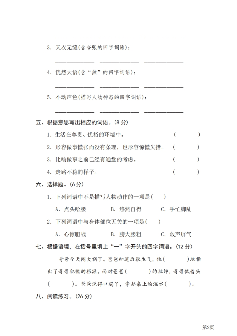 五年级下册语文部编版期末专项测试卷6词语积累(含答案)芝士老师1年前发布关注私信0.37MB5页780202五年级下册语文部编版期末专项测试卷6词语积累(含答案)此内容为免费资源,请登录后查看0积分 登录查看强烈推荐123网盘下载,非会员不限速如果下载链接失效请联系客服补发如需手机上下载打印,请用手机浏览器打开本站免费资源 第1页 / 共5页 第2页 / 共5页 该文档为免费文档,您可直接下载完整版进行阅读 © 版权声明 1 如果您找不到想要的资料, 点击这儿 可以查看网站使用手册! 2 可能会帮助到你: 网址导航 | 网站入门 | 获取邀请码 3 如果遇到付费才能看或下载的文章,建议您升级本站VIP会员;全站所有资源任意下,免费看。 4本站资源部分来自网络,由多位老师收集整理,如有侵犯你的权益请 联系站长,我们会第一时间进行审核删除。 5 站内资源为网友个人学习或测试研究使用,未经原版权作者许可,禁止用于任何商业途径!请在下载24小时内删除! THE END考试试卷专题五年级资料专区# 期末 这套资料真的不错,快分享给您身边最好的朋友吧^_^点赞202 分享QQ空间微博QQ好友海报分享复制链接收藏 可以按Ctrl+D收藏此页面 HI!请登录 登录 注册 搜索 开启精彩搜索 免费内容强烈推荐123网盘下载,非会员不限速如果下载链接失效请联系客服补发如需手机上下载打印,请用手机浏览器打开本站 登录查看默写 (12)高频考点 (1)高分必刷 (0)高中语文 (5)高中英语 (7)高中生物 (5)高中数学 (12)高中地理 (5)高中历史 (5)高中化学 (5)预习 (2)音标 (1)雷锋 (0)阅读 (0)阅兵 (5)钱 (6)量词 (3)部首 (1)逻辑 (12)通用 (0) 小吖麻麻关注 这家伙很懒,什么都没有写... s_juan1关注 这家伙很懒,什么都没有写... kele关注 这家伙很懒,什么都没有写... 燕子关注 这家伙很懒,什么都没有写... 四爷关注 这家伙很懒,什么都没有写... 小豆点sun关注 这家伙很懒,什么都没有写... Mouse Dad关注 这家伙很懒,什么都没有写... kuan关注 这家伙很懒,什么都没有写... 领取5000T网盘资源 百度网盘5000T网红资源 立即领取 在手机上浏览此页面 登录没有账号?立即注册手机号或邮箱图形验证码验证码发送验证码记住登录账号密码登录 登录用户名/手机号/邮箱登录密码图形验证码记住登录找回密码 | 免密登录 登录注册已有账号,立即登录设置用户名手机号图形验证码验证码发送验证码设置密码重复密码邀请码(选填)注册已阅读并同意用户协议、隐私声明