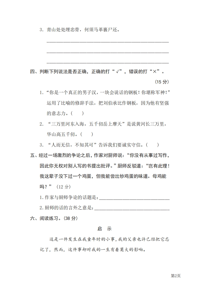 五年级下册语文部编版期末专项测试卷13句意分析(含答案)芝士老师1年前发布关注私信0.31MB5页837299五年级下册语文部编版期末专项测试卷13句意分析(含答案)此内容为免费资源,请登录后查看0积分 登录查看强烈推荐123网盘下载,非会员不限速如果下载链接失效请联系客服补发如需手机上下载打印,请用手机浏览器打开本站免费资源 第1页 / 共5页 第2页 / 共5页 该文档为免费文档,您可直接下载完整版进行阅读 © 版权声明 1 如果您找不到想要的资料, 点击这儿 可以查看网站使用手册! 2 可能会帮助到你: 网址导航 | 网站入门 | 获取邀请码 3 如果遇到付费才能看或下载的文章,建议您升级本站VIP会员;全站所有资源任意下,免费看。 4本站资源部分来自网络,由多位老师收集整理,如有侵犯你的权益请 联系站长,我们会第一时间进行审核删除。 5 站内资源为网友个人学习或测试研究使用,未经原版权作者许可,禁止用于任何商业途径!请在下载24小时内删除! THE END考试试卷专题五年级资料专区# 期末 这套资料真的不错,快分享给您身边最好的朋友吧^_^点赞299 分享QQ空间微博QQ好友海报分享复制链接收藏 可以按Ctrl+D收藏此页面 HI!请登录 登录 注册 搜索 开启精彩搜索 免费内容强烈推荐123网盘下载,非会员不限速如果下载链接失效请联系客服补发如需手机上下载打印,请用手机浏览器打开本站 登录查看默写 (12)高频考点 (1)高分必刷 (0)高中语文 (5)高中英语 (7)高中生物 (5)高中数学 (12)高中地理 (5)高中历史 (5)高中化学 (5)预习 (2)音标 (1)雷锋 (0)阅读 (0)阅兵 (5)钱 (6)量词 (3)部首 (1)逻辑 (12)通用 (0) s_juan1关注 这家伙很懒,什么都没有写... 有有关注 这家伙很懒,什么都没有写... 考拉妈咪关注 这家伙很懒,什么都没有写... 好东西关注 这家伙很懒,什么都没有写... 张老师关注 这家伙很懒,什么都没有写... 我来了关注 这家伙很懒,什么都没有写... LLLLLSSSSS关注 这家伙很懒,什么都没有写... 小豆点sun关注 这家伙很懒,什么都没有写... 领取5000T网盘资源 百度网盘5000T网红资源 立即领取 在手机上浏览此页面 登录没有账号?立即注册手机号或邮箱图形验证码验证码发送验证码记住登录账号密码登录 登录用户名/手机号/邮箱登录密码图形验证码记住登录找回密码 | 免密登录 登录注册已有账号,立即登录设置用户名手机号图形验证码验证码发送验证码设置密码重复密码邀请码(选填)注册已阅读并同意用户协议、隐私声明