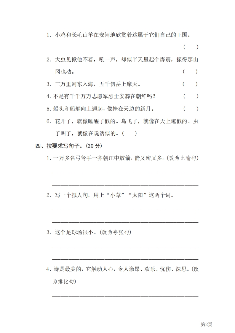 五年级下册语文部编版期末专项测试卷12修辞手法(含答案)芝士老师1年前发布关注私信0.35MB5页775206五年级下册语文部编版期末专项测试卷12修辞手法(含答案)此内容为免费资源,请登录后查看0积分 登录查看强烈推荐123网盘下载,非会员不限速如果下载链接失效请联系客服补发如需手机上下载打印,请用手机浏览器打开本站免费资源 第1页 / 共5页 第2页 / 共5页 该文档为免费文档,您可直接下载完整版进行阅读 © 版权声明 1 如果您找不到想要的资料, 点击这儿 可以查看网站使用手册! 2 可能会帮助到你: 网址导航 | 网站入门 | 获取邀请码 3 如果遇到付费才能看或下载的文章,建议您升级本站VIP会员;全站所有资源任意下,免费看。 4本站资源部分来自网络,由多位老师收集整理,如有侵犯你的权益请 联系站长,我们会第一时间进行审核删除。 5 站内资源为网友个人学习或测试研究使用,未经原版权作者许可,禁止用于任何商业途径!请在下载24小时内删除! THE END考试试卷专题五年级资料专区# 期末 这套资料真的不错,快分享给您身边最好的朋友吧^_^点赞206 分享QQ空间微博QQ好友海报分享复制链接收藏 可以按Ctrl+D收藏此页面 HI!请登录 登录 注册 搜索 开启精彩搜索 免费内容强烈推荐123网盘下载,非会员不限速如果下载链接失效请联系客服补发如需手机上下载打印,请用手机浏览器打开本站 登录查看默写 (12)高频考点 (1)高分必刷 (0)高中语文 (5)高中英语 (7)高中生物 (5)高中数学 (12)高中地理 (5)高中历史 (5)高中化学 (5)预习 (2)音标 (1)雷锋 (0)阅读 (0)阅兵 (5)钱 (6)量词 (3)部首 (1)逻辑 (12)通用 (0) 小吖麻麻关注 这家伙很懒,什么都没有写... s_juan1关注 这家伙很懒,什么都没有写... kele关注 这家伙很懒,什么都没有写... 燕子关注 这家伙很懒,什么都没有写... 四爷关注 这家伙很懒,什么都没有写... 小豆点sun关注 这家伙很懒,什么都没有写... Mouse Dad关注 这家伙很懒,什么都没有写... kuan关注 这家伙很懒,什么都没有写... 领取5000T网盘资源 百度网盘5000T网红资源 立即领取 在手机上浏览此页面 登录没有账号?立即注册手机号或邮箱图形验证码验证码发送验证码记住登录账号密码登录 登录用户名/手机号/邮箱登录密码图形验证码记住登录找回密码 | 免密登录 登录注册已有账号,立即登录设置用户名手机号图形验证码验证码发送验证码设置密码重复密码邀请码(选填)注册已阅读并同意用户协议、隐私声明