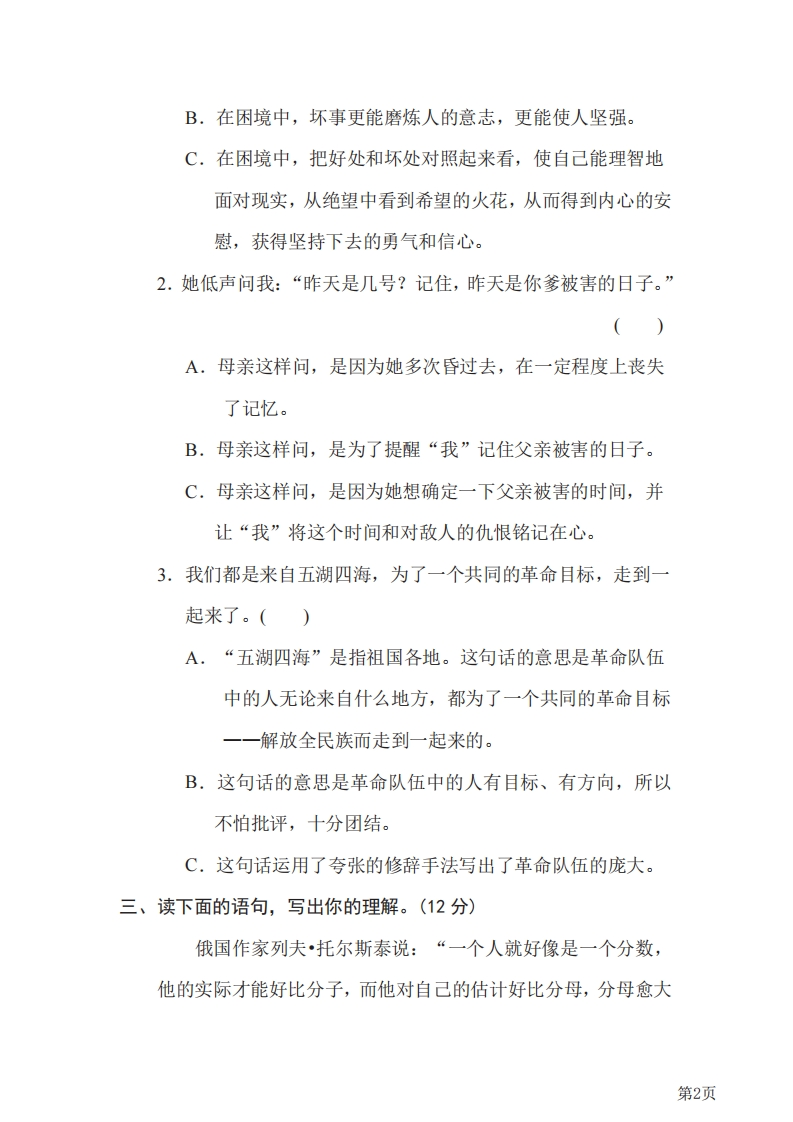 六年级下册语文部编版期末专项测试卷11体会句意(含答案)芝士老师1年前发布关注私信0.34MB6页730283六年级下册语文部编版期末专项测试卷11体会句意(含答案)此内容为免费资源,请登录后查看0积分 登录查看强烈推荐123网盘下载,非会员不限速如果下载链接失效请联系客服补发如需手机上下载打印,请用手机浏览器打开本站免费资源 第1页 / 共6页 第2页 / 共6页 该文档为免费文档,您可直接下载完整版进行阅读 © 版权声明 1 如果您找不到想要的资料, 点击这儿 可以查看网站使用手册! 2 可能会帮助到你: 网址导航 | 网站入门 | 获取邀请码 3 如果遇到付费才能看或下载的文章,建议您升级本站VIP会员;全站所有资源任意下,免费看。 4本站资源部分来自网络,由多位老师收集整理,如有侵犯你的权益请 联系站长,我们会第一时间进行审核删除。 5 站内资源为网友个人学习或测试研究使用,未经原版权作者许可,禁止用于任何商业途径!请在下载24小时内删除! THE END考试试卷专题六年级资料专区# 期末 这套资料真的不错,快分享给您身边最好的朋友吧^_^点赞283 分享QQ空间微博QQ好友海报分享复制链接收藏 可以按Ctrl+D收藏此页面 HI!请登录 登录 注册 搜索 开启精彩搜索 免费内容强烈推荐123网盘下载,非会员不限速如果下载链接失效请联系客服补发如需手机上下载打印,请用手机浏览器打开本站 登录查看默写 (12)高频考点 (1)高分必刷 (0)高中语文 (5)高中英语 (7)高中生物 (5)高中数学 (12)高中地理 (5)高中历史 (5)高中化学 (5)预习 (2)音标 (1)雷锋 (0)阅读 (0)阅兵 (5)钱 (6)量词 (3)部首 (1)逻辑 (12)通用 (0) s_juan1关注 这家伙很懒,什么都没有写... 小吖麻麻关注 这家伙很懒,什么都没有写... kele关注 这家伙很懒,什么都没有写... 燕子关注 这家伙很懒,什么都没有写... 四爷关注 这家伙很懒,什么都没有写... 小豆点sun关注 这家伙很懒,什么都没有写... Mouse Dad关注 这家伙很懒,什么都没有写... kuan关注 这家伙很懒,什么都没有写... 领取5000T网盘资源 百度网盘5000T网红资源 立即领取 在手机上浏览此页面 登录没有账号?立即注册手机号或邮箱图形验证码验证码发送验证码记住登录账号密码登录 登录用户名/手机号/邮箱登录密码图形验证码记住登录找回密码 | 免密登录 登录注册已有账号,立即登录设置用户名手机号图形验证码验证码发送验证码设置密码重复密码邀请码(选填)注册已阅读并同意用户协议、隐私声明