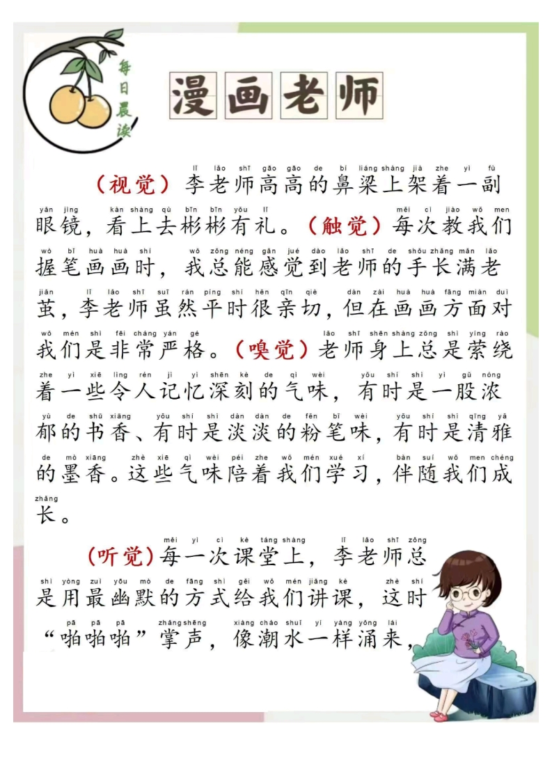 【低年级】每日晨读-美文素材-有注音(25页)芝士老师1年前发布关注私信11.41MB25页511212【低年级】每日晨读-美文素材-有注音(25页)此内容为付费资源,请付费后查看会员专属资源学期会员免费研学会员免费您暂无购买权限,请先开通会员开通会员强烈推荐123网盘下载,非会员不限速如果下载链接失效请联系客服补发如需手机上下载打印,请用手机浏览器打开本站付费资源 第1页 / 共25页 第2页 / 共25页 第3页 / 共25页 第4页 / 共25页 试读已结束,还剩21页,您可下载完整版后进行离线阅读 © 版权声明 1 如果您找不到想要的资料, 点击这儿 可以查看网站使用手册! 2 可能会帮助到你: 网址导航 | 网站入门 | 获取邀请码 3 如果遇到付费才能看或下载的文章,建议您升级本站VIP会员;全站所有资源任意下,免费看。 4本站资源部分来自网络,由多位老师收集整理,如有侵犯你的权益请 联系站长,我们会第一时间进行审核删除。 5 站内资源为网友个人学习或测试研究使用,未经原版权作者许可,禁止用于任何商业途径!请在下载24小时内删除! THE END一年级资料专区# 晨读 这套资料真的不错,快分享给您身边最好的朋友吧^_^点赞212 分享QQ空间微博QQ好友海报分享复制链接收藏 可以按Ctrl+D收藏此页面 HI!请登录 登录 注册 搜索 开启精彩搜索 付费资源会员专属资源学期会员免费研学会员免费强烈推荐123网盘下载,非会员不限速如果下载链接失效请联系客服补发如需手机上下载打印,请用手机浏览器打开本站您暂无购买权限,请先开通会员开通会员默写 (12)高频考点 (1)高分必刷 (0)高中语文 (5)高中英语 (7)高中生物 (5)高中数学 (12)高中地理 (5)高中历史 (5)高中化学 (5)预习 (2)音标 (1)雷锋 (0)阅读 (0)阅兵 (5)钱 (6)量词 (3)部首 (1)逻辑 (12)通用 (0) 小吖麻麻关注 这家伙很懒,什么都没有写... kele关注 这家伙很懒,什么都没有写... 燕子关注 这家伙很懒,什么都没有写... 四爷关注 这家伙很懒,什么都没有写... 小豆点sun关注 这家伙很懒,什么都没有写... Mouse Dad关注 这家伙很懒,什么都没有写... kuan关注 这家伙很懒,什么都没有写... Wxx08关注 这家伙很懒,什么都没有写... 领取5000T网盘资源 百度网盘5000T网红资源 立即领取 在手机上浏览此页面 登录没有账号?立即注册手机号或邮箱图形验证码验证码发送验证码记住登录账号密码登录 登录用户名/手机号/邮箱登录密码图形验证码记住登录找回密码 | 免密登录 登录注册已有账号,立即登录设置用户名手机号图形验证码验证码发送验证码设置密码重复密码邀请码(选填)注册已阅读并同意用户协议、隐私声明