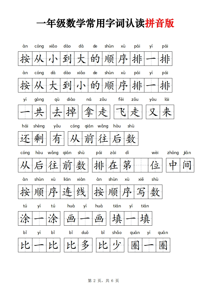 一年级数学常用字词认读拼音版6页芝士老师1年前更新关注私信0.22MB6页585275一年级数学常用字词认读拼音版6页此内容为付费资源,请付费后查看会员专属资源学期会员免费研学会员免费您暂无购买权限,请先开通会员开通会员强烈推荐123网盘下载,非会员不限速如果下载链接失效请联系客服补发如需手机上下载打印,请用手机浏览器打开本站付费资源 第1页 / 共6页 第2页 / 共6页 试读已结束,还剩4页,您可下载完整版后进行离线阅读 © 版权声明 1 如果您找不到想要的资料, 点击这儿 可以查看网站使用手册! 2 可能会帮助到你: 网址导航 | 网站入门 | 获取邀请码 3 如果遇到付费才能看或下载的文章,建议您升级本站VIP会员;全站所有资源任意下,免费看。 4本站资源部分来自网络,由多位老师收集整理,如有侵犯你的权益请 联系站长,我们会第一时间进行审核删除。 5 站内资源为网友个人学习或测试研究使用,未经原版权作者许可,禁止用于任何商业途径!请在下载24小时内删除! THE END一年级资料专区# 数学常用字 这套资料真的不错,快分享给您身边最好的朋友吧^_^点赞275 分享QQ空间微博QQ好友海报分享复制链接收藏 可以按Ctrl+D收藏此页面 HI!请登录 登录 注册 搜索 开启精彩搜索 付费资源会员专属资源学期会员免费研学会员免费强烈推荐123网盘下载,非会员不限速如果下载链接失效请联系客服补发如需手机上下载打印,请用手机浏览器打开本站您暂无购买权限,请先开通会员开通会员默写 (12)高频考点 (1)高分必刷 (0)高中语文 (5)高中英语 (7)高中生物 (5)高中数学 (12)高中地理 (5)高中历史 (5)高中化学 (5)预习 (2)音标 (1)雷锋 (0)阅读 (0)阅兵 (5)钱 (6)量词 (3)部首 (1)逻辑 (12)通用 (0) s_juan1关注 这家伙很懒,什么都没有写... 小吖麻麻关注 这家伙很懒,什么都没有写... kele关注 这家伙很懒,什么都没有写... 燕子关注 这家伙很懒,什么都没有写... 四爷关注 这家伙很懒,什么都没有写... 小豆点sun关注 这家伙很懒,什么都没有写... Mouse Dad关注 这家伙很懒,什么都没有写... kuan关注 这家伙很懒,什么都没有写... 领取5000T网盘资源 百度网盘5000T网红资源 立即领取 在手机上浏览此页面 登录没有账号?立即注册手机号或邮箱图形验证码验证码发送验证码记住登录账号密码登录 登录用户名/手机号/邮箱登录密码图形验证码记住登录找回密码 | 免密登录 登录注册已有账号,立即登录设置用户名手机号图形验证码验证码发送验证码设置密码重复密码邀请码(选填)注册已阅读并同意用户协议、隐私声明