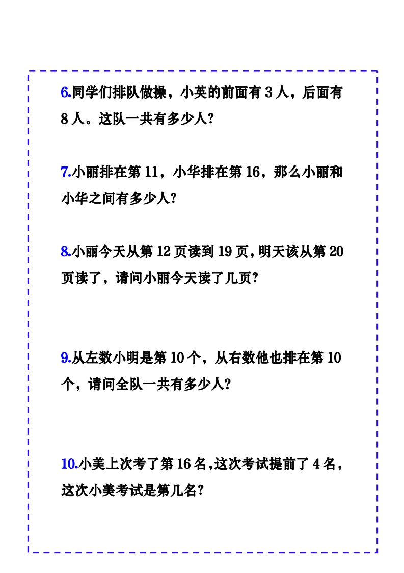 一年级上册数学排队问题应用题强化练习芝士老师1年前更新关注私信1.17MB8页514105一年级上册数学排队问题应用题强化练习此内容为付费资源,请付费后查看会员专属资源学期会员免费研学会员免费您暂无购买权限,请先开通会员开通会员强烈推荐123网盘下载,非会员不限速如果下载链接失效请联系客服补发如需手机上下载打印,请用手机浏览器打开本站付费资源 第1页 / 共8页 第2页 / 共8页 第3页 / 共8页 试读已结束,还剩5页,您可下载完整版后进行离线阅读 © 版权声明 1 如果您找不到想要的资料, 点击这儿 可以查看网站使用手册! 2 可能会帮助到你: 网址导航 | 网站入门 | 获取邀请码 3 如果遇到付费才能看或下载的文章,建议您升级本站VIP会员;全站所有资源任意下,免费看。 4本站资源部分来自网络,由多位老师收集整理,如有侵犯你的权益请 联系站长,我们会第一时间进行审核删除。 5 站内资源为网友个人学习或测试研究使用,未经原版权作者许可,禁止用于任何商业途径!请在下载24小时内删除! THE END一年级资料专区# 排队问题 这套资料真的不错,快分享给您身边最好的朋友吧^_^点赞105 分享QQ空间微博QQ好友海报分享复制链接收藏 可以按Ctrl+D收藏此页面 HI!请登录 登录 注册 搜索 开启精彩搜索 付费资源会员专属资源学期会员免费研学会员免费强烈推荐123网盘下载,非会员不限速如果下载链接失效请联系客服补发如需手机上下载打印,请用手机浏览器打开本站您暂无购买权限,请先开通会员开通会员默写 (12)高频考点 (1)高分必刷 (0)高中语文 (5)高中英语 (7)高中生物 (5)高中数学 (12)高中地理 (5)高中历史 (5)高中化学 (5)预习 (2)音标 (1)雷锋 (0)阅读 (0)阅兵 (5)钱 (6)量词 (3)部首 (1)逻辑 (12)通用 (0) s_juan1关注 这家伙很懒,什么都没有写... kuan关注 这家伙很懒,什么都没有写... 小吖麻麻关注 这家伙很懒,什么都没有写... evawawawa关注 这家伙很懒,什么都没有写... kele关注 这家伙很懒,什么都没有写... 燕子关注 这家伙很懒,什么都没有写... 四爷关注 这家伙很懒,什么都没有写... 小豆点sun关注 这家伙很懒,什么都没有写... 领取5000T网盘资源 百度网盘5000T网红资源 立即领取 在手机上浏览此页面 登录没有账号?立即注册手机号或邮箱图形验证码验证码发送验证码记住登录账号密码登录 登录用户名/手机号/邮箱登录密码图形验证码记住登录找回密码 | 免密登录 登录注册已有账号,立即登录设置用户名手机号图形验证码验证码发送验证码设置密码重复密码邀请码(选填)注册已阅读并同意用户协议、隐私声明