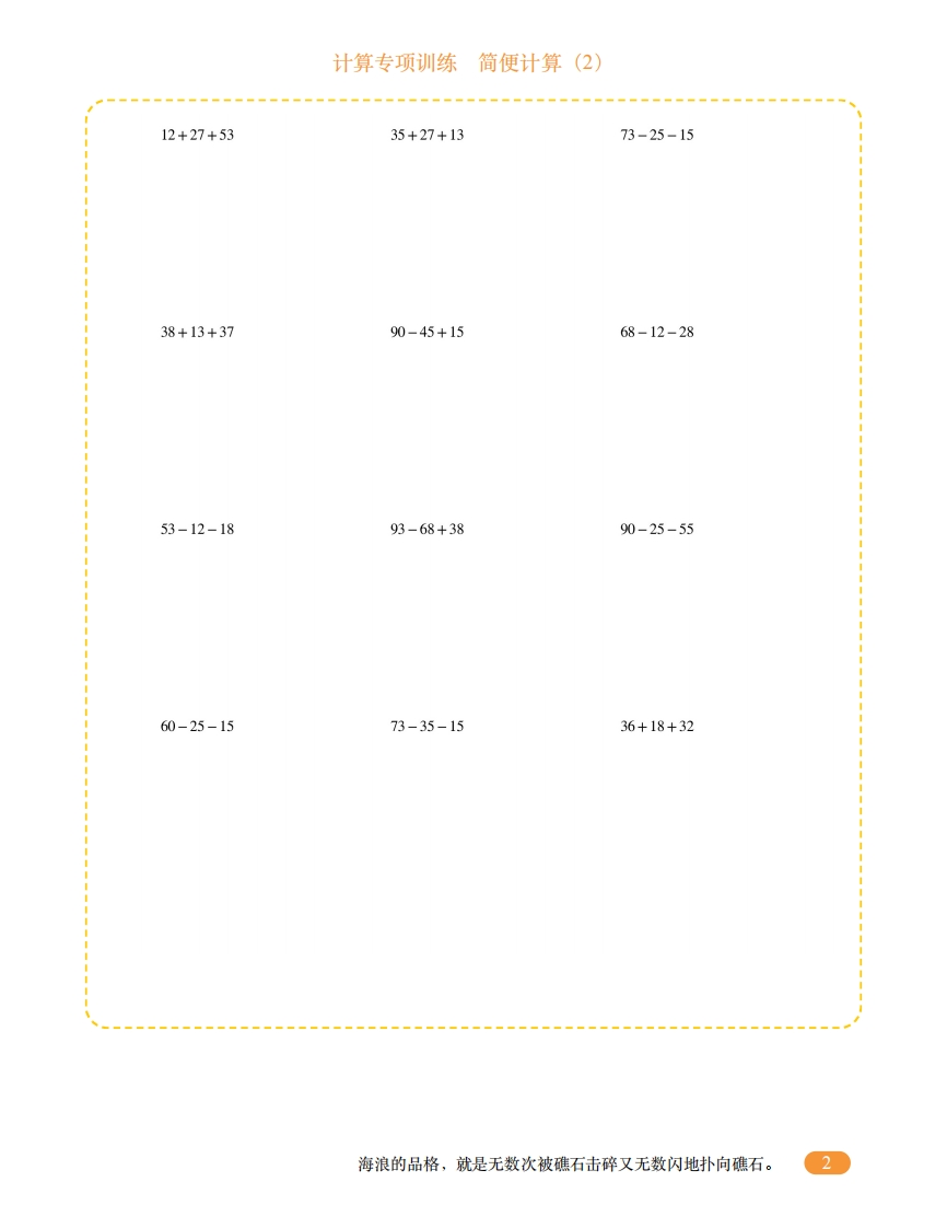 二年级计算专项训练4(简便计算2)芝士老师12个月前发布关注私信1.51MB10页754160二年级计算专项训练4(简便计算2)此内容为付费资源,请付费后查看会员专属资源学期会员免费研学会员免费您暂无购买权限,请先开通会员开通会员强烈推荐123网盘下载,非会员不限速如果下载链接失效请联系客服补发如需手机上下载打印,请用手机浏览器打开本站付费资源 第1页 / 共10页 第2页 / 共10页 第3页 / 共10页 试读已结束,还剩7页,您可下载完整版后进行离线阅读 © 版权声明 1 如果您找不到想要的资料, 点击这儿 可以查看网站使用手册! 2 可能会帮助到你: 网址导航 | 网站入门 | 获取邀请码 3 如果遇到付费才能看或下载的文章,建议您升级本站VIP会员;全站所有资源任意下,免费看。 4本站资源部分来自网络,由多位老师收集整理,如有侵犯你的权益请 联系站长,我们会第一时间进行审核删除。 5 站内资源为网友个人学习或测试研究使用,未经原版权作者许可,禁止用于任何商业途径!请在下载24小时内删除! THE END二年级资料专区# 2年级# 计算训练, 这套资料真的不错,快分享给您身边最好的朋友吧^_^点赞160 分享QQ空间微博QQ好友海报分享复制链接收藏 可以按Ctrl+D收藏此页面 HI!请登录 登录 注册 搜索 开启精彩搜索 付费资源会员专属资源学期会员免费研学会员免费强烈推荐123网盘下载,非会员不限速如果下载链接失效请联系客服补发如需手机上下载打印,请用手机浏览器打开本站您暂无购买权限,请先开通会员开通会员默写 (12)高频考点 (1)高分必刷 (0)高中语文 (5)高中英语 (7)高中生物 (5)高中数学 (12)高中地理 (5)高中历史 (5)高中化学 (5)预习 (2)音标 (1)雷锋 (0)阅读 (0)阅兵 (5)钱 (6)量词 (3)部首 (1)逻辑 (12)通用 (0) 小吖麻麻关注 这家伙很懒,什么都没有写... kele关注 这家伙很懒,什么都没有写... 燕子关注 这家伙很懒,什么都没有写... 四爷关注 这家伙很懒,什么都没有写... 小豆点sun关注 这家伙很懒,什么都没有写... Mouse Dad关注 这家伙很懒,什么都没有写... kuan关注 这家伙很懒,什么都没有写... Wxx08关注 这家伙很懒,什么都没有写... 领取5000T网盘资源 百度网盘5000T网红资源 立即领取 在手机上浏览此页面 登录没有账号?立即注册手机号或邮箱图形验证码验证码发送验证码记住登录账号密码登录 登录用户名/手机号/邮箱登录密码图形验证码记住登录找回密码 | 免密登录 登录注册已有账号,立即登录设置用户名手机号图形验证码验证码发送验证码设置密码重复密码邀请码(选填)注册已阅读并同意用户协议、隐私声明