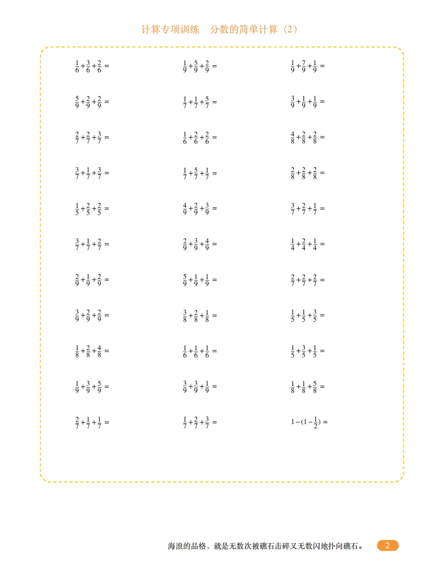 三年级计算专项训练8(分数的简单计算2)芝士老师12个月前发布关注私信1.68MB6页747132三年级计算专项训练8(分数的简单计算2)此内容为付费资源,请付费后查看会员专属资源学期会员免费研学会员免费您暂无购买权限,请先开通会员开通会员强烈推荐123网盘下载,非会员不限速如果下载链接失效请联系客服补发如需手机上下载打印,请用手机浏览器打开本站付费资源 第1页 / 共6页 第2页 / 共6页 第3页 / 共6页 试读已结束,还剩3页,您可下载完整版后进行离线阅读 © 版权声明 1 如果您找不到想要的资料, 点击这儿 可以查看网站使用手册! 2 可能会帮助到你: 网址导航 | 网站入门 | 获取邀请码 3 如果遇到付费才能看或下载的文章,建议您升级本站VIP会员;全站所有资源任意下,免费看。 4本站资源部分来自网络,由多位老师收集整理,如有侵犯你的权益请 联系站长,我们会第一时间进行审核删除。 5 站内资源为网友个人学习或测试研究使用,未经原版权作者许可,禁止用于任何商业途径!请在下载24小时内删除! THE END三年级资料专区# 计算训练# 3年级 这套资料真的不错,快分享给您身边最好的朋友吧^_^点赞132 分享QQ空间微博QQ好友海报分享复制链接收藏 可以按Ctrl+D收藏此页面 HI!请登录 登录 注册 搜索 开启精彩搜索 付费资源会员专属资源学期会员免费研学会员免费强烈推荐123网盘下载,非会员不限速如果下载链接失效请联系客服补发如需手机上下载打印,请用手机浏览器打开本站您暂无购买权限,请先开通会员开通会员默写 (12)高频考点 (1)高分必刷 (0)高中语文 (5)高中英语 (7)高中生物 (5)高中数学 (12)高中地理 (5)高中历史 (5)高中化学 (5)预习 (2)音标 (1)雷锋 (0)阅读 (0)阅兵 (5)钱 (6)量词 (3)部首 (1)逻辑 (12)通用 (0) s_juan1关注 这家伙很懒,什么都没有写... 小吖麻麻关注 这家伙很懒,什么都没有写... kele关注 这家伙很懒,什么都没有写... 燕子关注 这家伙很懒,什么都没有写... 四爷关注 这家伙很懒,什么都没有写... 小豆点sun关注 这家伙很懒,什么都没有写... Mouse Dad关注 这家伙很懒,什么都没有写... kuan关注 这家伙很懒,什么都没有写... 领取5000T网盘资源 百度网盘5000T网红资源 立即领取 在手机上浏览此页面 登录没有账号?立即注册手机号或邮箱图形验证码验证码发送验证码记住登录账号密码登录 登录用户名/手机号/邮箱登录密码图形验证码记住登录找回密码 | 免密登录 登录注册已有账号,立即登录设置用户名手机号图形验证码验证码发送验证码设置密码重复密码邀请码(选填)注册已阅读并同意用户协议、隐私声明
