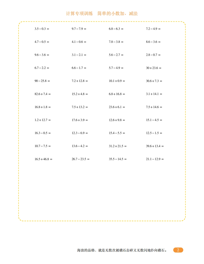 三年级计算专项训练11(简单的小数加、减法)芝士老师12个月前发布关注私信2.34MB8页796264三年级计算专项训练11(简单的小数加、减法)此内容为付费资源,请付费后查看会员专属资源学期会员免费研学会员免费您暂无购买权限,请先开通会员开通会员强烈推荐123网盘下载,非会员不限速如果下载链接失效请联系客服补发如需手机上下载打印,请用手机浏览器打开本站付费资源 第1页 / 共8页 第2页 / 共8页 第3页 / 共8页 试读已结束,还剩5页,您可下载完整版后进行离线阅读 © 版权声明 1 如果您找不到想要的资料, 点击这儿 可以查看网站使用手册! 2 可能会帮助到你: 网址导航 | 网站入门 | 获取邀请码 3 如果遇到付费才能看或下载的文章,建议您升级本站VIP会员;全站所有资源任意下,免费看。 4本站资源部分来自网络,由多位老师收集整理,如有侵犯你的权益请 联系站长,我们会第一时间进行审核删除。 5 站内资源为网友个人学习或测试研究使用,未经原版权作者许可,禁止用于任何商业途径!请在下载24小时内删除! THE END三年级资料专区# 计算训练# 3年级 这套资料真的不错,快分享给您身边最好的朋友吧^_^点赞264 分享QQ空间微博QQ好友海报分享复制链接收藏 可以按Ctrl+D收藏此页面 HI!请登录 登录 注册 搜索 开启精彩搜索 付费资源会员专属资源学期会员免费研学会员免费强烈推荐123网盘下载,非会员不限速如果下载链接失效请联系客服补发如需手机上下载打印,请用手机浏览器打开本站您暂无购买权限,请先开通会员开通会员默写 (12)高频考点 (1)高分必刷 (0)高中语文 (5)高中英语 (7)高中生物 (5)高中数学 (12)高中地理 (5)高中历史 (5)高中化学 (5)预习 (2)音标 (1)雷锋 (0)阅读 (0)阅兵 (5)钱 (6)量词 (3)部首 (1)逻辑 (12)通用 (0) 小吖麻麻关注 这家伙很懒,什么都没有写... kele关注 这家伙很懒,什么都没有写... 燕子关注 这家伙很懒,什么都没有写... 四爷关注 这家伙很懒,什么都没有写... 小豆点sun关注 这家伙很懒,什么都没有写... Mouse Dad关注 这家伙很懒,什么都没有写... kuan关注 这家伙很懒,什么都没有写... Wxx08关注 这家伙很懒,什么都没有写... 领取5000T网盘资源 百度网盘5000T网红资源 立即领取 在手机上浏览此页面 登录没有账号?立即注册手机号或邮箱图形验证码验证码发送验证码记住登录账号密码登录 登录用户名/手机号/邮箱登录密码图形验证码记住登录找回密码 | 免密登录 登录注册已有账号,立即登录设置用户名手机号图形验证码验证码发送验证码设置密码重复密码邀请码(选填)注册已阅读并同意用户协议、隐私声明