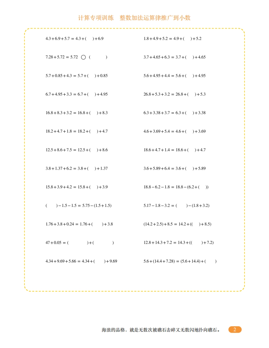 四年级计算专项训练12(整数加法运算律推广到小数)芝士老师12个月前发布关注私信5.42MB24页591116四年级计算专项训练12(整数加法运算律推广到小数)此内容为付费资源,请付费后查看会员专属资源学期会员免费研学会员免费您暂无购买权限,请先开通会员开通会员强烈推荐123网盘下载,非会员不限速如果下载链接失效请联系客服补发如需手机上下载打印,请用手机浏览器打开本站付费资源 第1页 / 共24页 第2页 / 共24页 第3页 / 共24页 试读已结束,还剩21页,您可下载完整版后进行离线阅读 © 版权声明 1 如果您找不到想要的资料, 点击这儿 可以查看网站使用手册! 2 可能会帮助到你: 网址导航 | 网站入门 | 获取邀请码 3 如果遇到付费才能看或下载的文章,建议您升级本站VIP会员;全站所有资源任意下,免费看。 4本站资源部分来自网络,由多位老师收集整理,如有侵犯你的权益请 联系站长,我们会第一时间进行审核删除。 5 站内资源为网友个人学习或测试研究使用,未经原版权作者许可,禁止用于任何商业途径!请在下载24小时内删除! THE END四年级资料专区# 计算训练# 4年级 这套资料真的不错,快分享给您身边最好的朋友吧^_^点赞116 分享QQ空间微博QQ好友海报分享复制链接收藏 可以按Ctrl+D收藏此页面 HI!请登录 登录 注册 搜索 开启精彩搜索 付费资源会员专属资源学期会员免费研学会员免费强烈推荐123网盘下载,非会员不限速如果下载链接失效请联系客服补发如需手机上下载打印,请用手机浏览器打开本站您暂无购买权限,请先开通会员开通会员默写 (12)高频考点 (1)高分必刷 (0)高中语文 (5)高中英语 (7)高中生物 (5)高中数学 (12)高中地理 (5)高中历史 (5)高中化学 (5)预习 (2)音标 (1)雷锋 (0)阅读 (0)阅兵 (5)钱 (6)量词 (3)部首 (1)逻辑 (12)通用 (0) 小吖麻麻关注 这家伙很懒,什么都没有写... kele关注 这家伙很懒,什么都没有写... 燕子关注 这家伙很懒,什么都没有写... 四爷关注 这家伙很懒,什么都没有写... 小豆点sun关注 这家伙很懒,什么都没有写... Mouse Dad关注 这家伙很懒,什么都没有写... kuan关注 这家伙很懒,什么都没有写... Wxx08关注 这家伙很懒,什么都没有写... 领取5000T网盘资源 百度网盘5000T网红资源 立即领取 在手机上浏览此页面 登录没有账号?立即注册手机号或邮箱图形验证码验证码发送验证码记住登录账号密码登录 登录用户名/手机号/邮箱登录密码图形验证码记住登录找回密码 | 免密登录 登录注册已有账号,立即登录设置用户名手机号图形验证码验证码发送验证码设置密码重复密码邀请码(选填)注册已阅读并同意用户协议、隐私声明