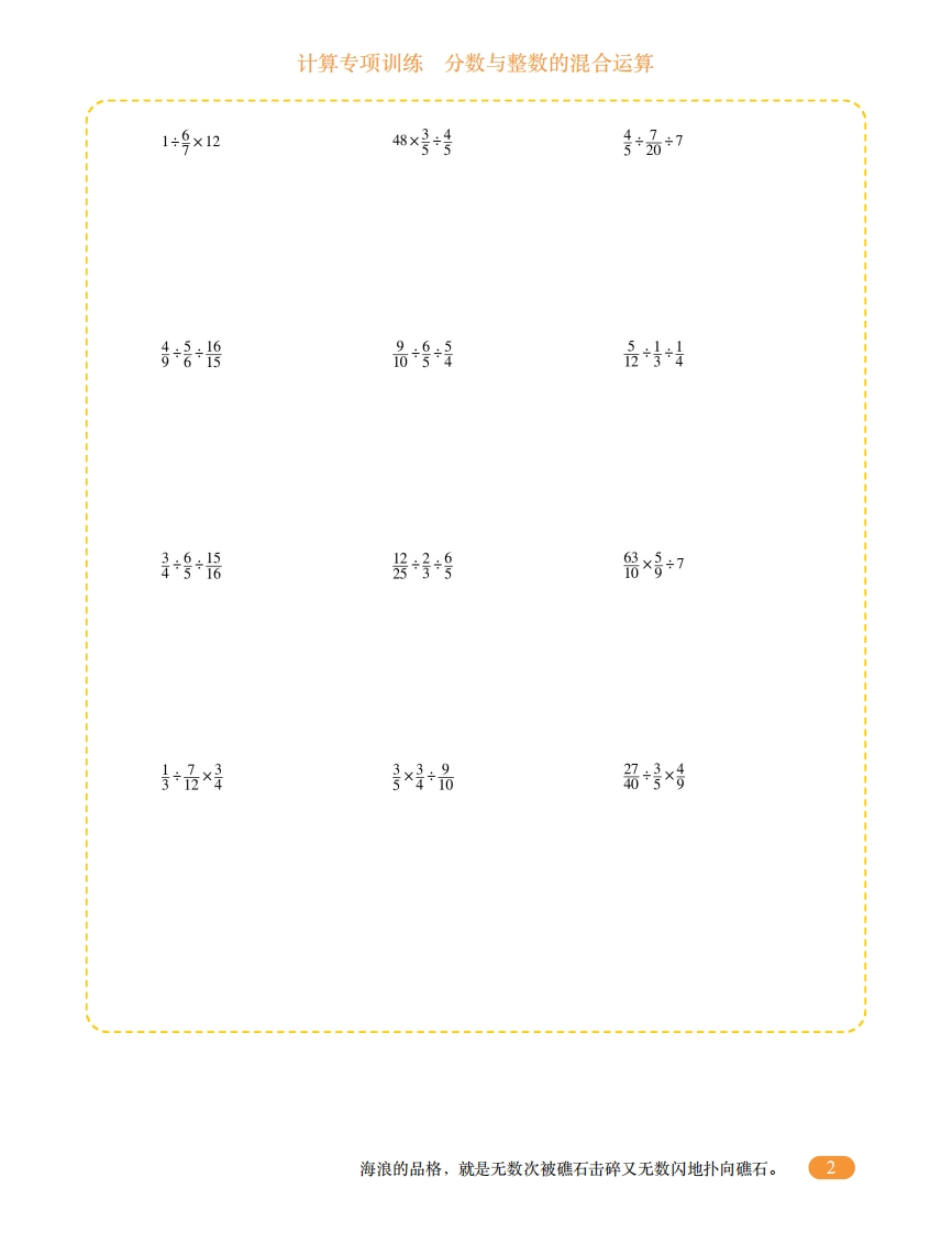 六年级计算专项训练6(分数与整数的混合运算)芝士老师12个月前发布关注私信1.67MB10页738124六年级计算专项训练6(分数与整数的混合运算)此内容为付费资源,请付费后查看会员专属资源学期会员免费研学会员免费您暂无购买权限,请先开通会员开通会员强烈推荐123网盘下载,非会员不限速如果下载链接失效请联系客服补发如需手机上下载打印,请用手机浏览器打开本站付费资源 第1页 / 共10页 第2页 / 共10页 第3页 / 共10页 试读已结束,还剩7页,您可下载完整版后进行离线阅读 © 版权声明 1 如果您找不到想要的资料, 点击这儿 可以查看网站使用手册! 2 可能会帮助到你: 网址导航 | 网站入门 | 获取邀请码 3 如果遇到付费才能看或下载的文章,建议您升级本站VIP会员;全站所有资源任意下,免费看。 4本站资源部分来自网络,由多位老师收集整理,如有侵犯你的权益请 联系站长,我们会第一时间进行审核删除。 5 站内资源为网友个人学习或测试研究使用,未经原版权作者许可,禁止用于任何商业途径!请在下载24小时内删除! THE END六年级资料专区# 计算训练# 6年级 这套资料真的不错,快分享给您身边最好的朋友吧^_^点赞124 分享QQ空间微博QQ好友海报分享复制链接收藏 可以按Ctrl+D收藏此页面 HI!请登录 登录 注册 搜索 开启精彩搜索 付费资源会员专属资源学期会员免费研学会员免费强烈推荐123网盘下载,非会员不限速如果下载链接失效请联系客服补发如需手机上下载打印,请用手机浏览器打开本站您暂无购买权限,请先开通会员开通会员默写 (12)高频考点 (1)高分必刷 (0)高中语文 (5)高中英语 (7)高中生物 (5)高中数学 (12)高中地理 (5)高中历史 (5)高中化学 (5)预习 (2)音标 (1)雷锋 (0)阅读 (0)阅兵 (5)钱 (6)量词 (3)部首 (1)逻辑 (12)通用 (0) s_juan1关注 这家伙很懒,什么都没有写... 小吖麻麻关注 这家伙很懒,什么都没有写... kele关注 这家伙很懒,什么都没有写... 燕子关注 这家伙很懒,什么都没有写... 四爷关注 这家伙很懒,什么都没有写... 小豆点sun关注 这家伙很懒,什么都没有写... Mouse Dad关注 这家伙很懒,什么都没有写... kuan关注 这家伙很懒,什么都没有写... 领取5000T网盘资源 百度网盘5000T网红资源 立即领取 在手机上浏览此页面 登录没有账号?立即注册手机号或邮箱图形验证码验证码发送验证码记住登录账号密码登录 登录用户名/手机号/邮箱登录密码图形验证码记住登录找回密码 | 免密登录 登录注册已有账号,立即登录设置用户名手机号图形验证码验证码发送验证码设置密码重复密码邀请码(选填)注册已阅读并同意用户协议、隐私声明