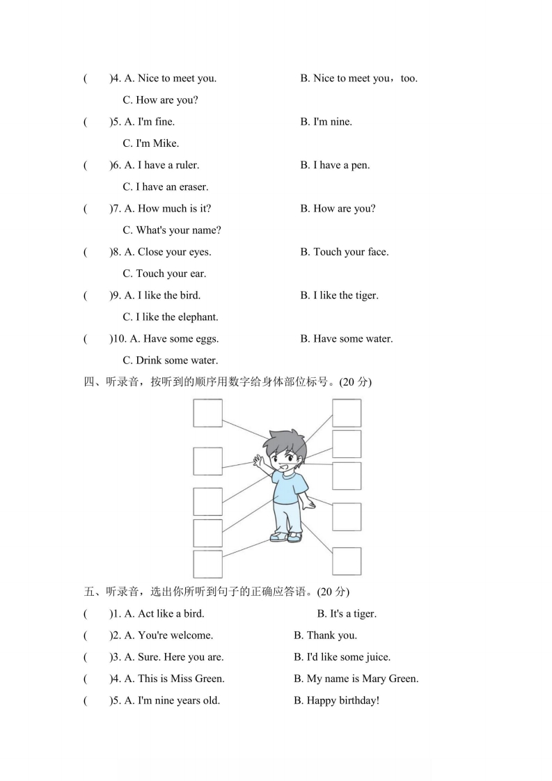 三年级上册英语人教PEP版听力专项复习卷1(含答案)5che12个月前更新关注私信0.99MB5页642271三年级上册英语人教PEP版听力专项复习卷1(含答案)此内容为付费资源,请付费后查看会员专属资源学期会员免费研学会员免费您暂无购买权限,请先开通会员开通会员强烈推荐123网盘下载,非会员不限速如果下载链接失效请联系客服补发如需手机上下载打印,请用手机浏览器打开本站大小MB加入VIP会员,畅享海量精品教育资源,同步教材更新,再赠送5000T精品热门网课!付费资源 第1页 / 共5页 第2页 / 共5页 试读已结束,还剩3页,您可下载完整版后进行离线阅读 © 版权声明 1 如果您找不到想要的资料, 点击这儿 可以查看网站使用手册! 2 可能会帮助到你: 网址导航 | 网站入门 | 获取邀请码 3 如果遇到付费才能看或下载的文章,建议您升级本站VIP会员;全站所有资源任意下,免费看。 4本站资源部分来自网络,由多位老师收集整理,如有侵犯你的权益请 联系站长,我们会第一时间进行审核删除。 5 站内资源为网友个人学习或测试研究使用,未经原版权作者许可,禁止用于任何商业途径!请在下载24小时内删除! THE END考试试卷专题英语学习资料试题 这套资料真的不错,快分享给您身边最好的朋友吧^_^点赞271 分享QQ空间微博QQ好友海报分享复制链接收藏 可以按Ctrl+D收藏此页面 HI!请登录 登录 注册 搜索 开启精彩搜索 付费资源会员专属资源学期会员免费研学会员免费强烈推荐123网盘下载,非会员不限速如果下载链接失效请联系客服补发如需手机上下载打印,请用手机浏览器打开本站您暂无购买权限,请先开通会员开通会员大小MB加入VIP会员,畅享海量精品教育资源,同步教材更新,再赠送5000T精品热门网课!默写 (12)高频考点 (1)高分必刷 (0)高中语文 (5)高中英语 (7)高中生物 (5)高中数学 (12)高中地理 (5)高中历史 (5)高中化学 (5)预习 (2)音标 (1)雷锋 (0)阅读 (0)阅兵 (5)钱 (6)量词 (3)部首 (1)逻辑 (12)通用 (0) 小吖麻麻关注 这家伙很懒,什么都没有写... kele关注 这家伙很懒,什么都没有写... 燕子关注 这家伙很懒,什么都没有写... 四爷关注 这家伙很懒,什么都没有写... 小豆点sun关注 这家伙很懒,什么都没有写... Mouse Dad关注 这家伙很懒,什么都没有写... kuan关注 这家伙很懒,什么都没有写... Wxx08关注 这家伙很懒,什么都没有写... 领取5000T网盘资源 百度网盘5000T网红资源 立即领取 在手机上浏览此页面 登录没有账号?立即注册手机号或邮箱图形验证码验证码发送验证码记住登录账号密码登录 登录用户名/手机号/邮箱登录密码图形验证码记住登录找回密码 | 免密登录 登录注册已有账号,立即登录设置用户名手机号图形验证码验证码发送验证码设置密码重复密码邀请码(选填)注册已阅读并同意用户协议、隐私声明